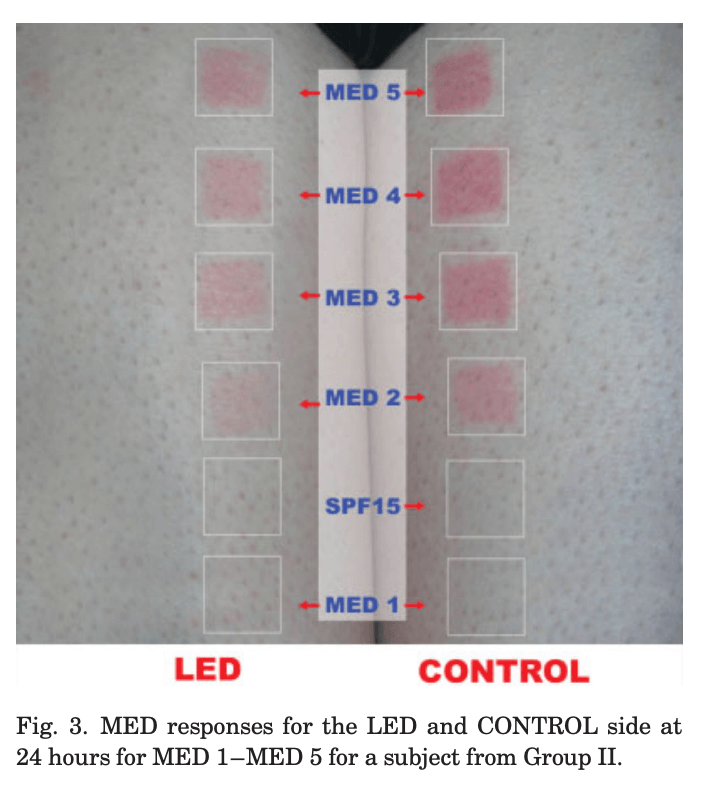 Red light therapy has been proven in clinical trials to prepare the skin for sunlight exposure, and prevent the occurrence of sunburn.